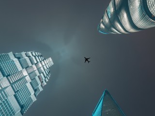 Plane flying over skyscrapers HD Wallpaper - 320x240