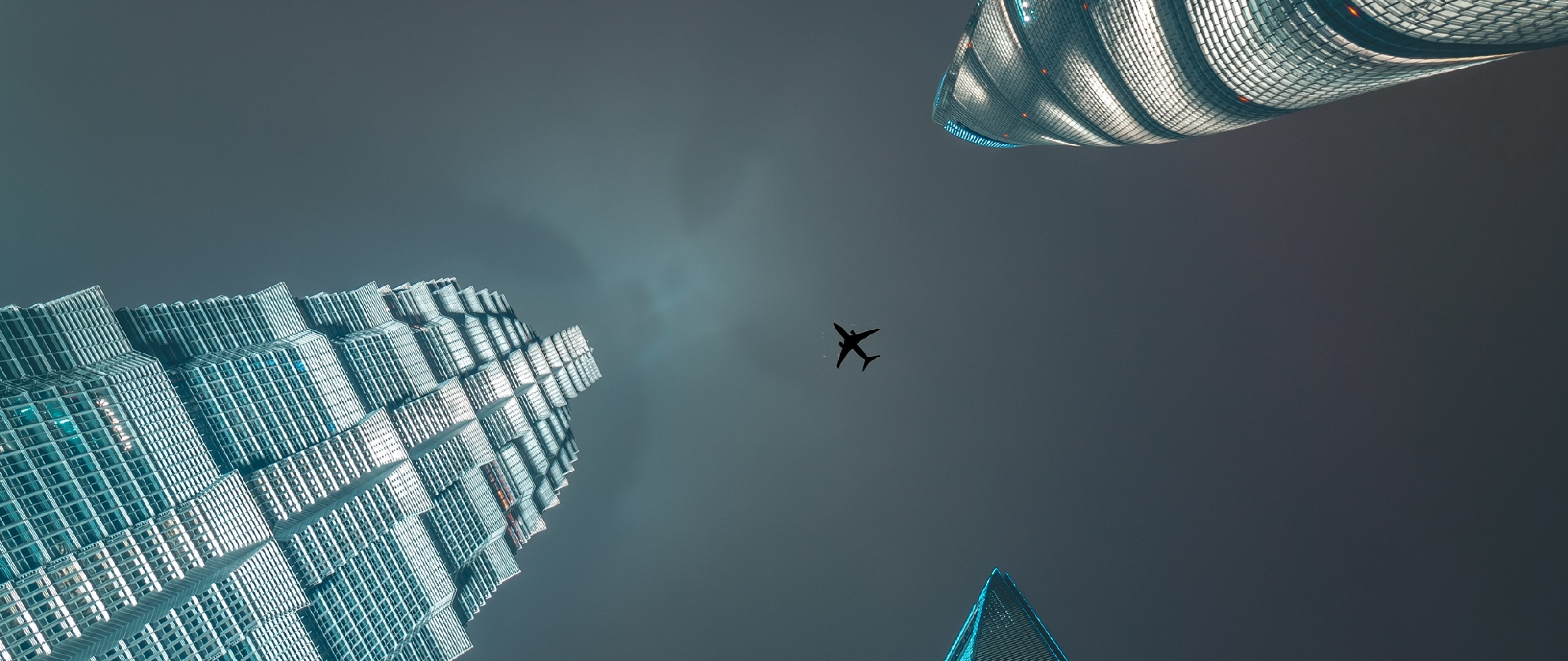 Plane flying over skyscrapers HD Wallpaper - 4K Ultra HD Wide TV