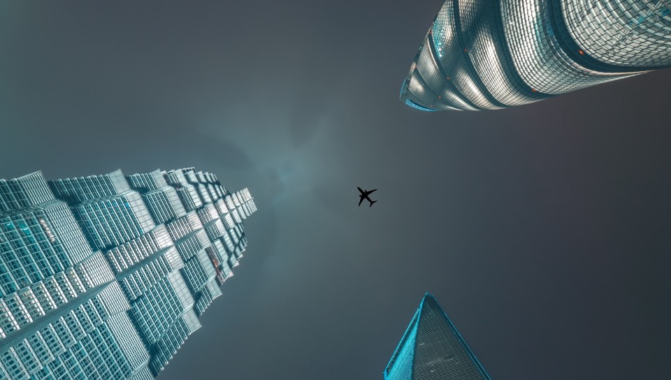 Plane flying over skyscrapers HD Wallpaper - 960x544 PS Vita
