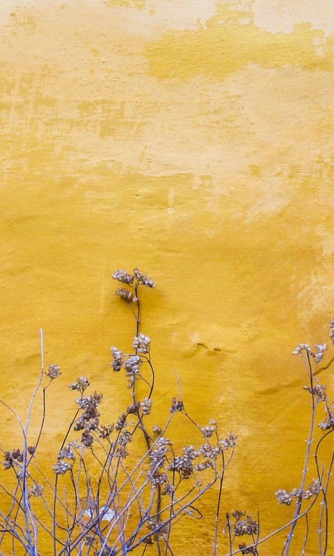 Plants next to a yellow wall HD Wallpaper - 480x800