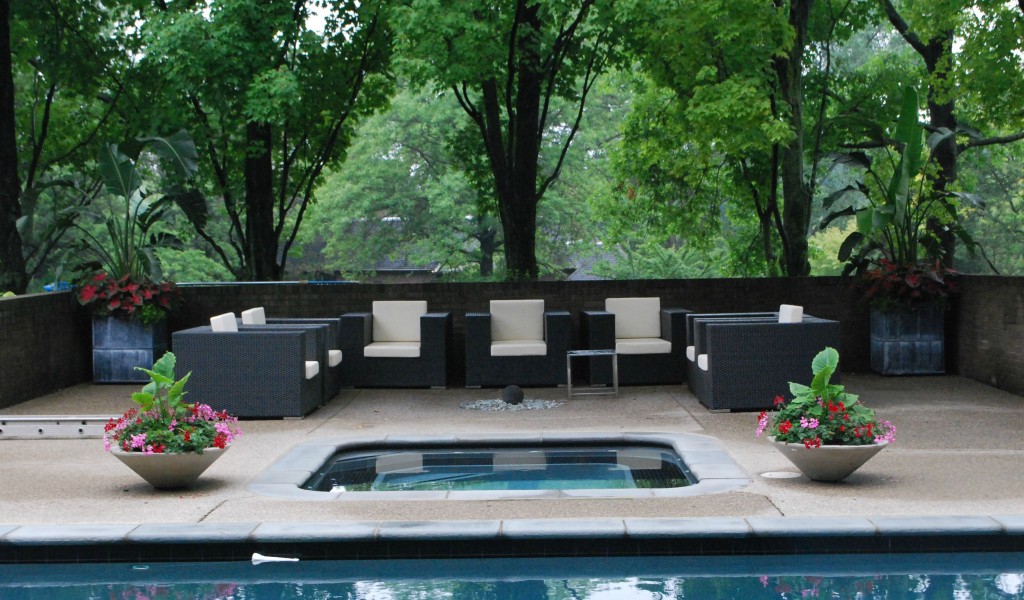Pot plants at pool area HD Wallpaper - 1024x600
