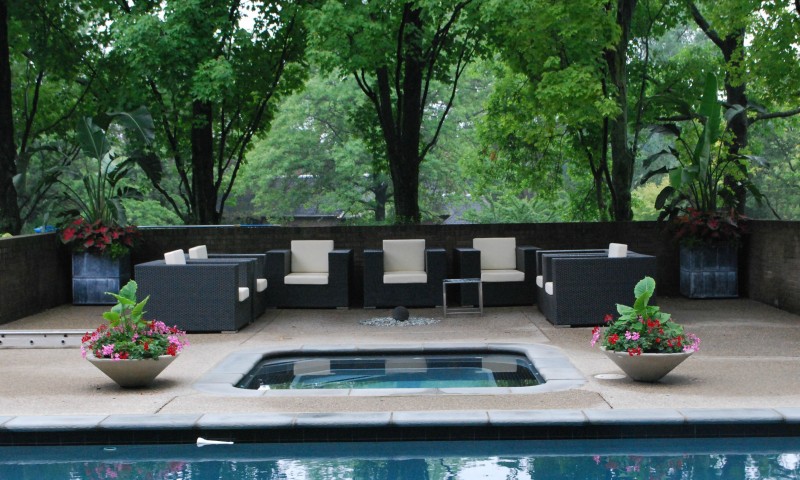Pot plants at pool area HD Wallpaper - 800x480