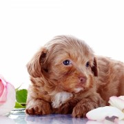 Puppy Lying By Roses Wallpaper for Desktop and Mobiles - Facebook Profile Picture
