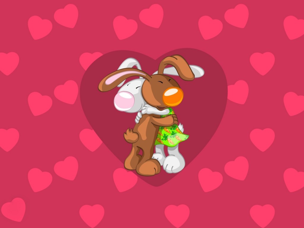 Rabbits hugging each other HD Wallpaper - 1024x768