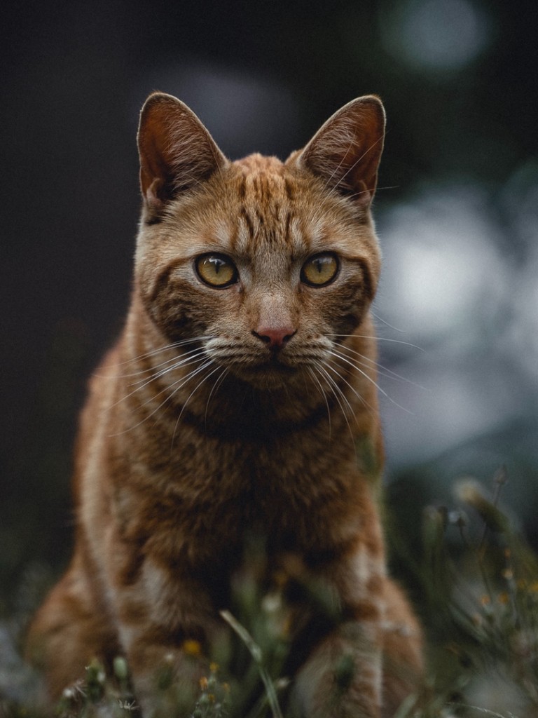 Red cat standing at the grass HD Wallpaper - Non-retina iPad