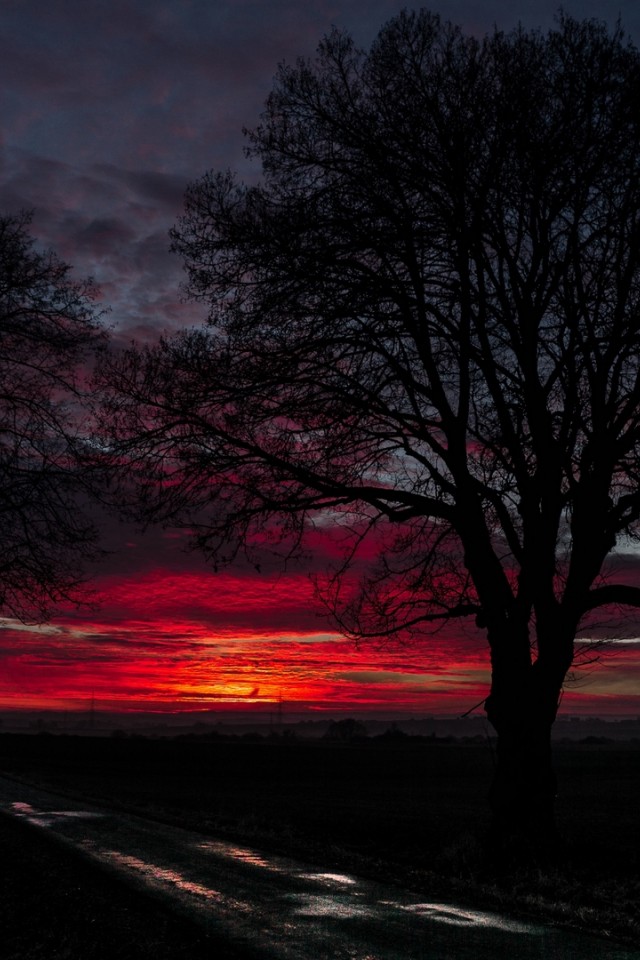 Red sunset over horizon HD Wallpaper - iPhone 4 / 4S / iPod
