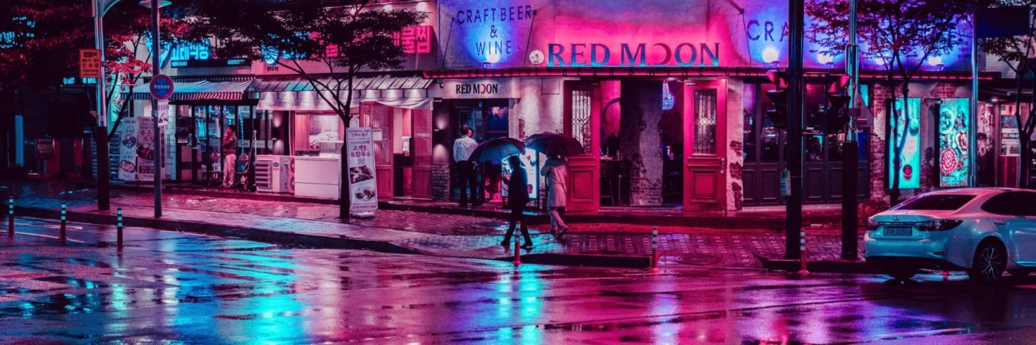 Reflection of neon lights at street HD Wallpaper - Instagram Cover Photo