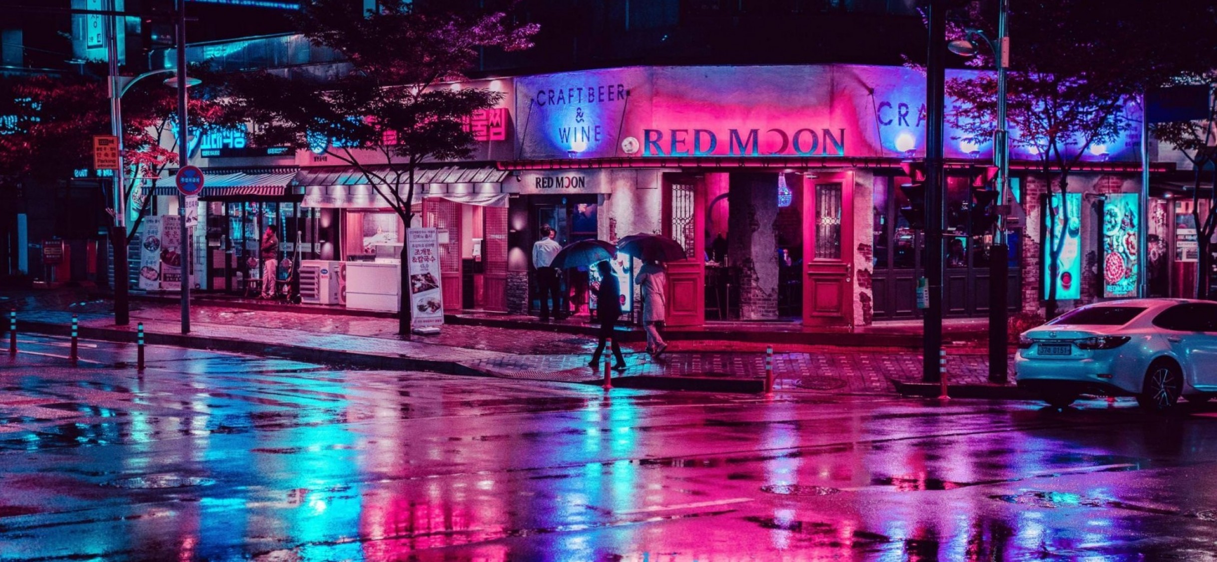 Reflection of neon lights at street HD Wallpaper - iPhone X