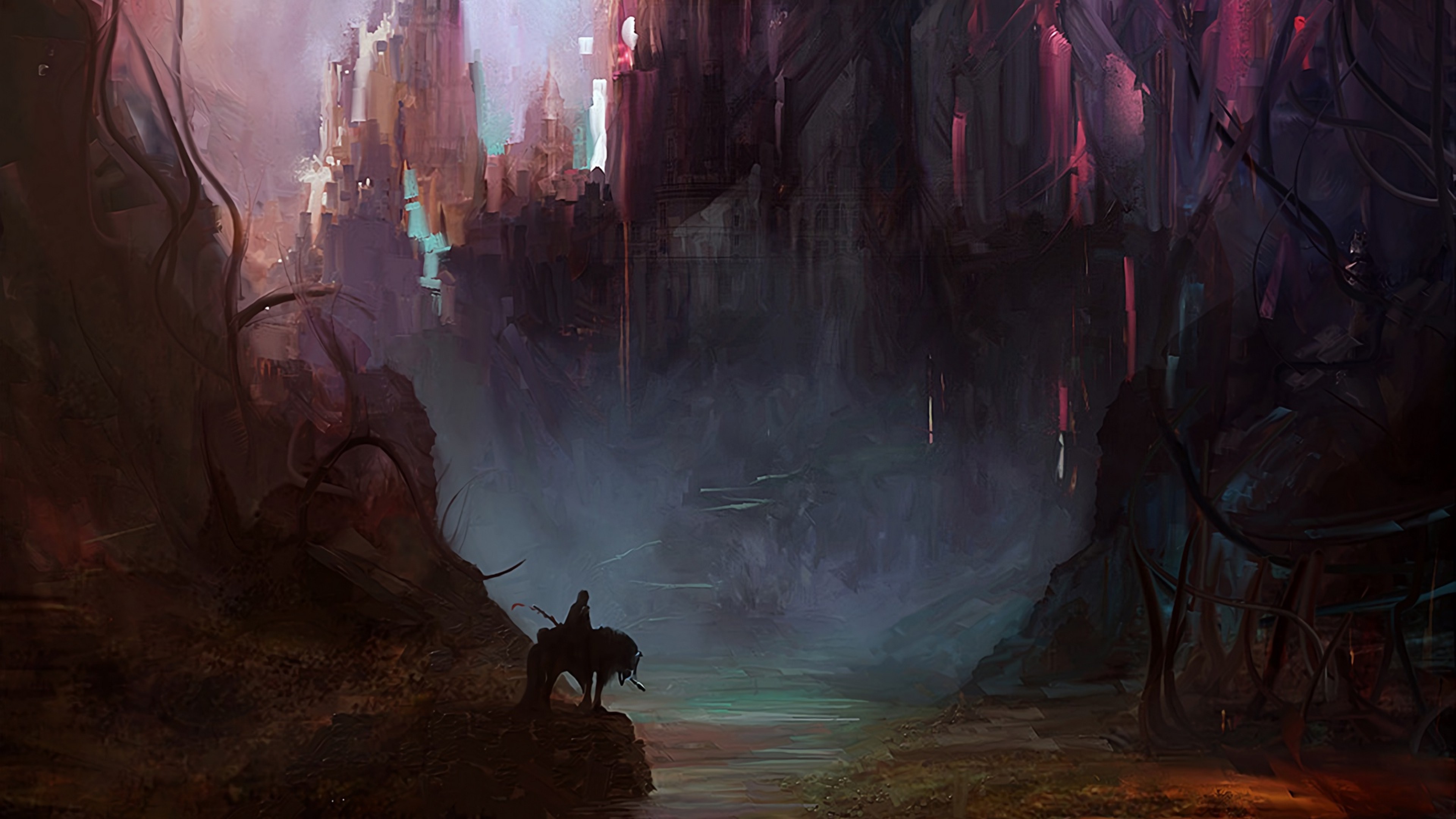 Rider with his horse near a castle HD Wallpaper - 4K Ultra HD
