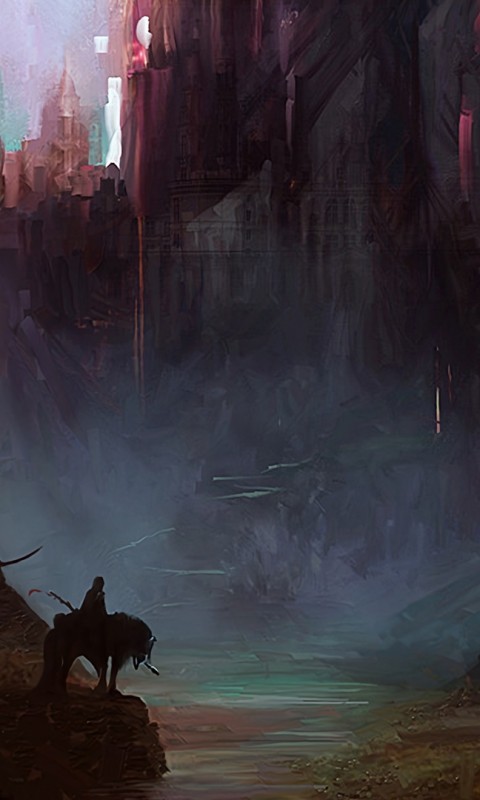Rider with his horse near a castle HD Wallpaper - 480x800