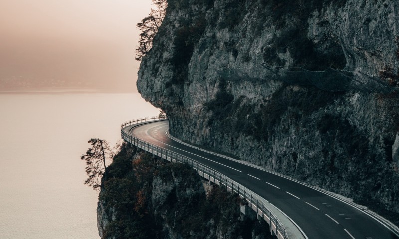 Road at rocky cliff HD Wallpaper - 800x480