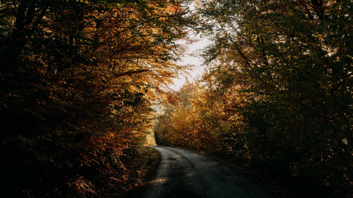 Road inside forest at Autumn HD Wallpaper - iPhone 7 / iPhone 8