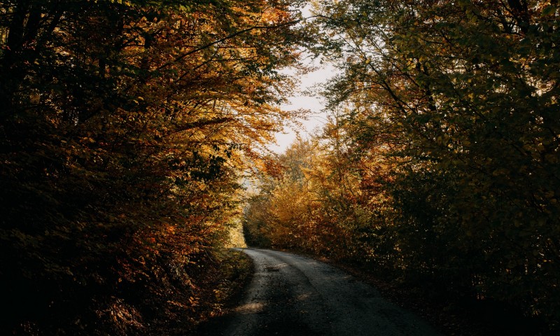 Road inside forest at Autumn HD Wallpaper - 800x480