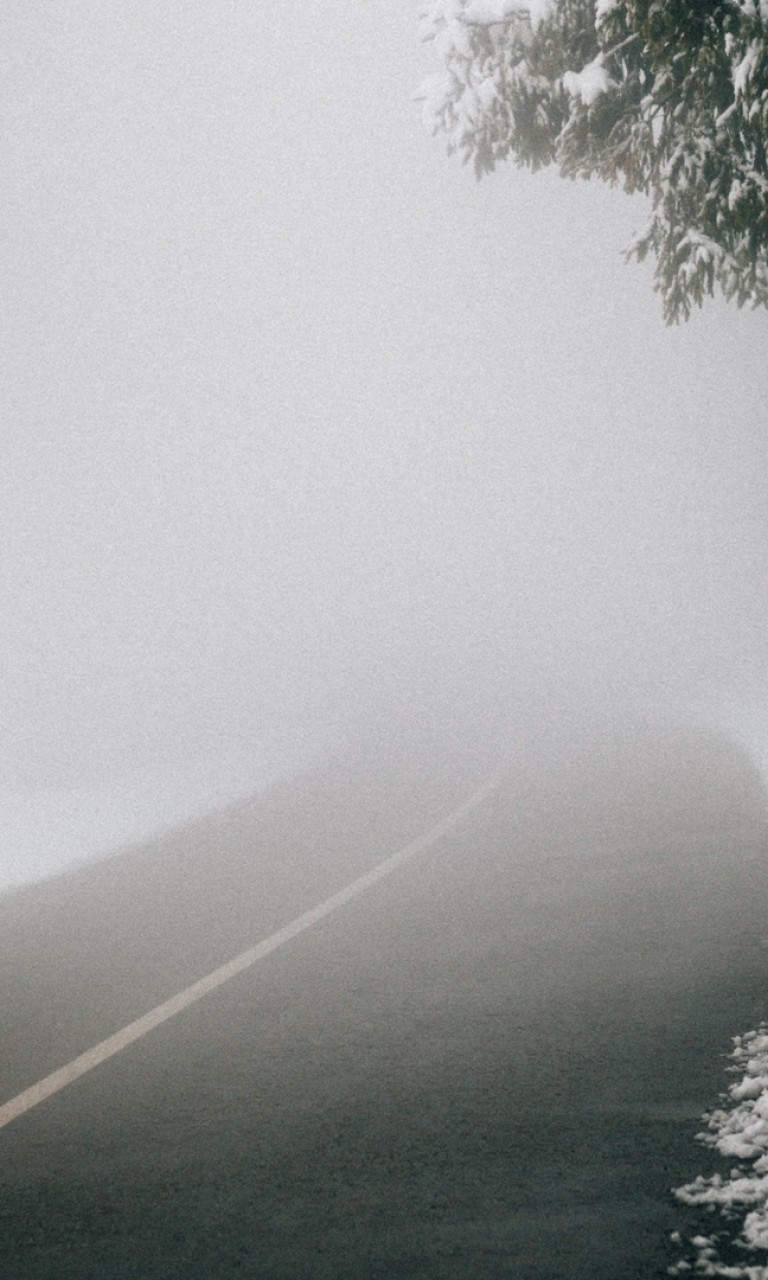 Road sign covered in fog HD Wallpaper - 768x1280