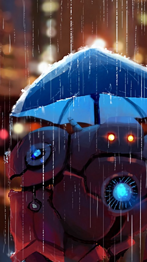 Robot under an umbrella HD Wallpaper - 480x854