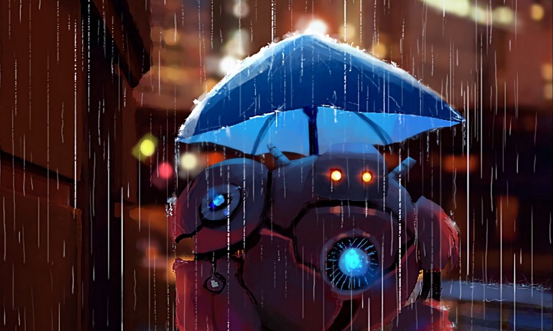 Robot under an umbrella HD Wallpaper - 800x480