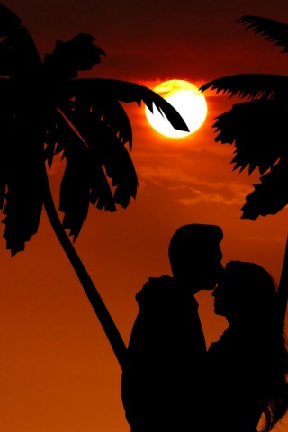 Romance under a palm tree HD Wallpaper - Older iPhone & iPod