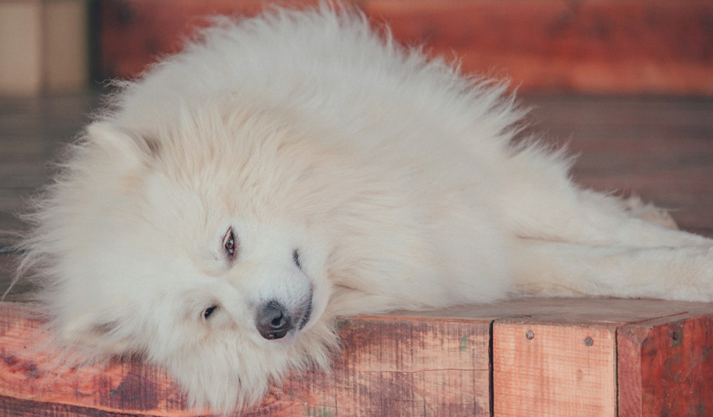 Samoyed Dog resting HD Wallpaper - 1024x600