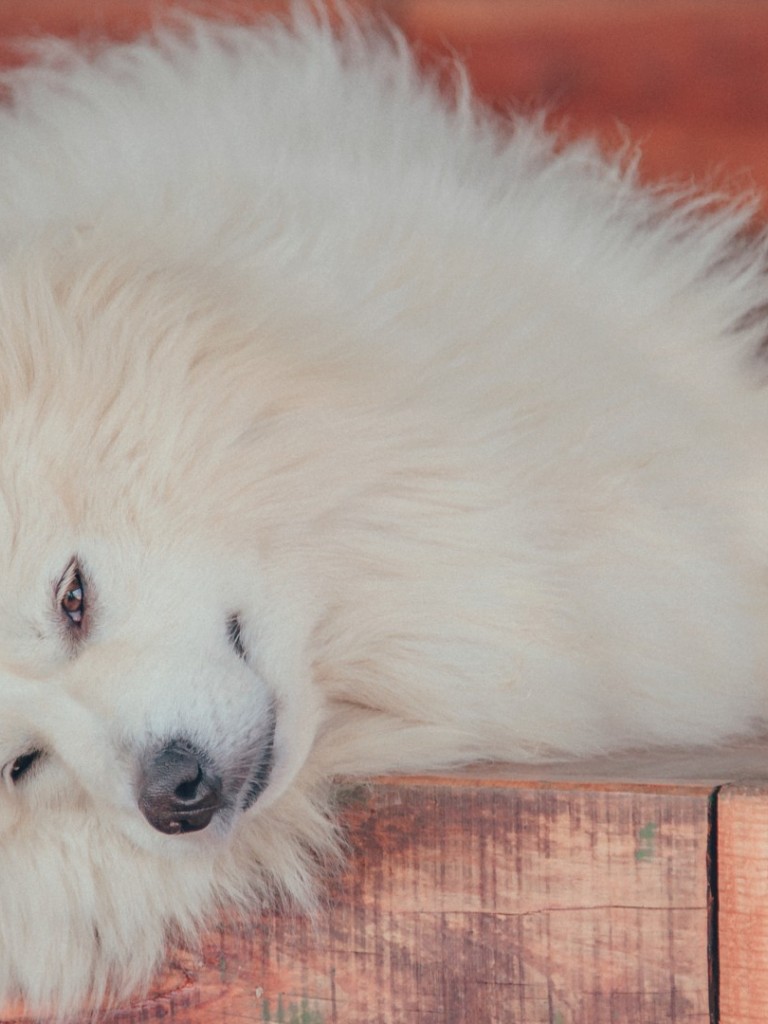 Samoyed Dog resting HD Wallpaper - Non-retina iPad