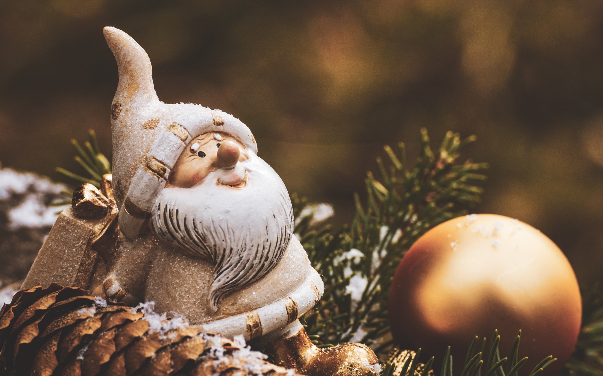 Santa Claus Beside Brown Bauble Decor HD Wallpaper - 1920x1200
