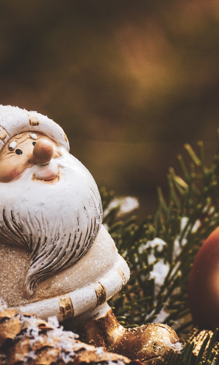 Santa Claus Beside Brown Bauble Decor HD Wallpaper - 768x1280