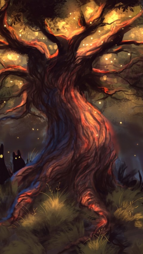 Scary creatures around a tree HD Wallpaper - 480x854