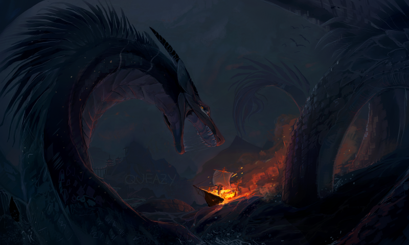 Sea monster attacks boatHD Wallpaper - 800x480