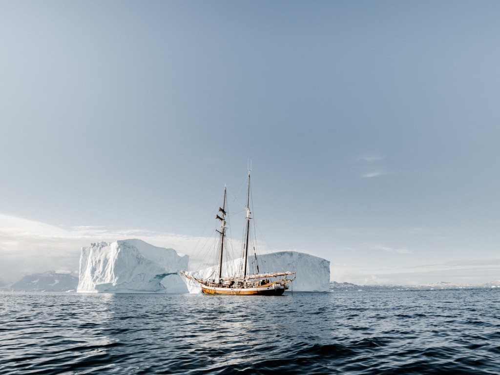 Ship passing through iceberg HD Wallpaper - 1024x768