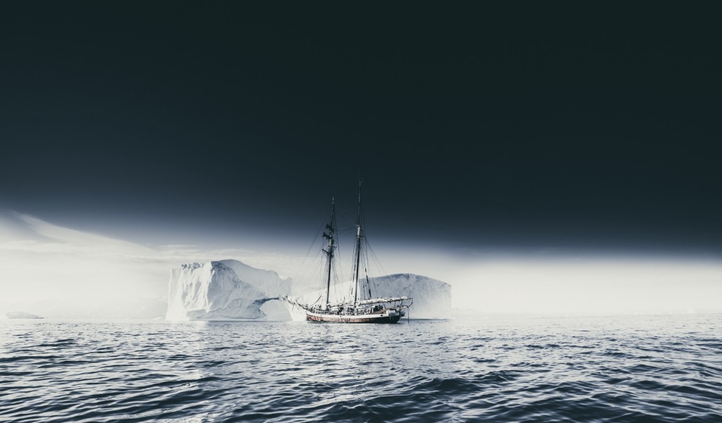 Ship sailing through an iceberg HD Wallpaper - 1024x600