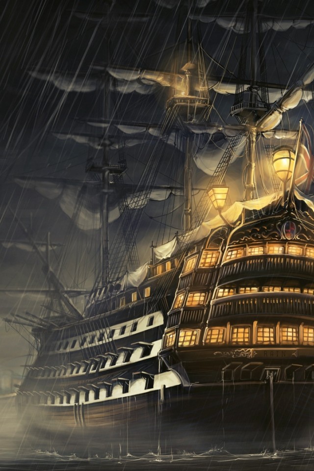 Ship sailing under the rain HD Wallpaper - iPhone 4 / 4S / iPod