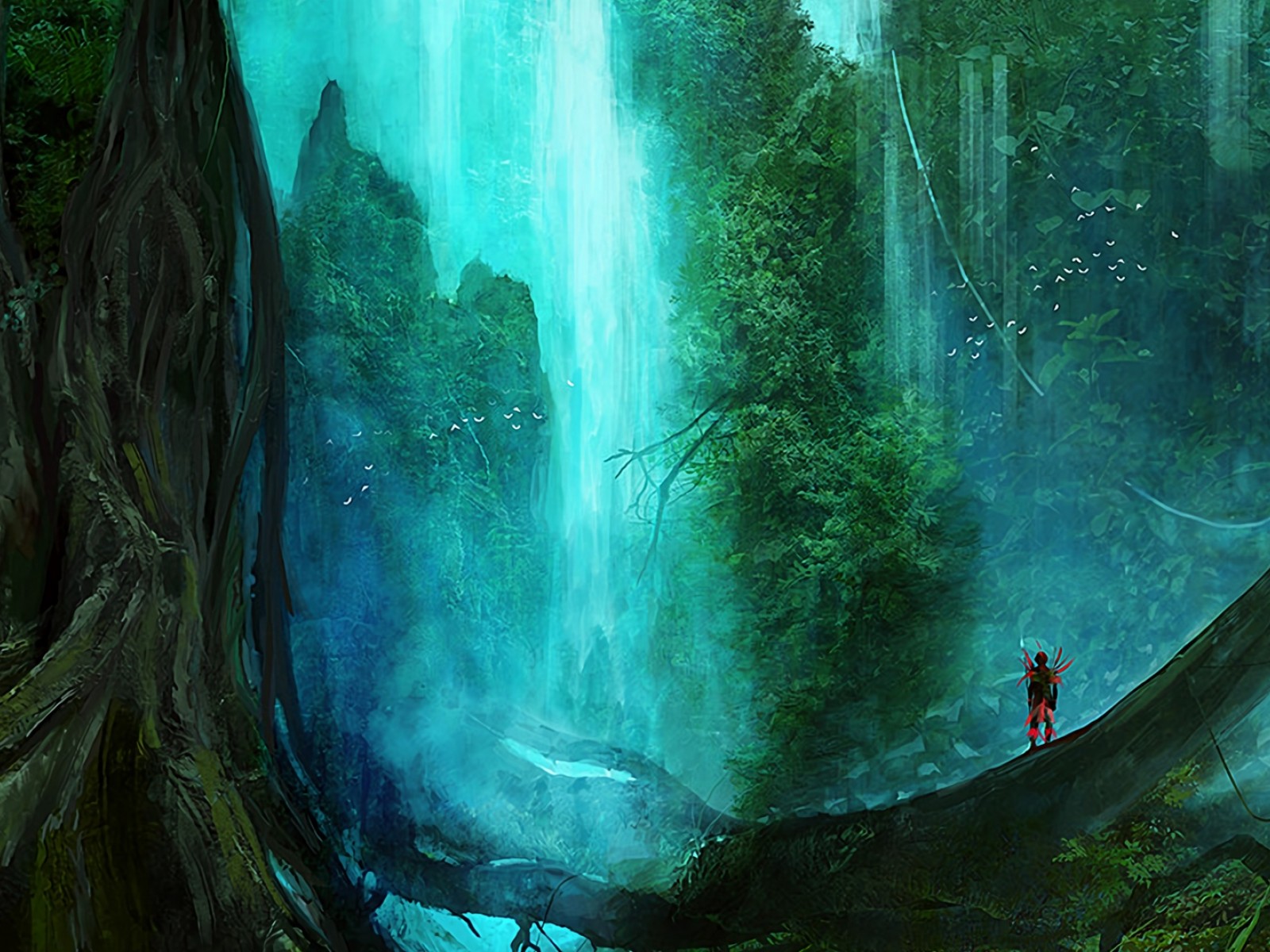 Silhouette near a waterfall HD Wallpaper - 1600x1200
