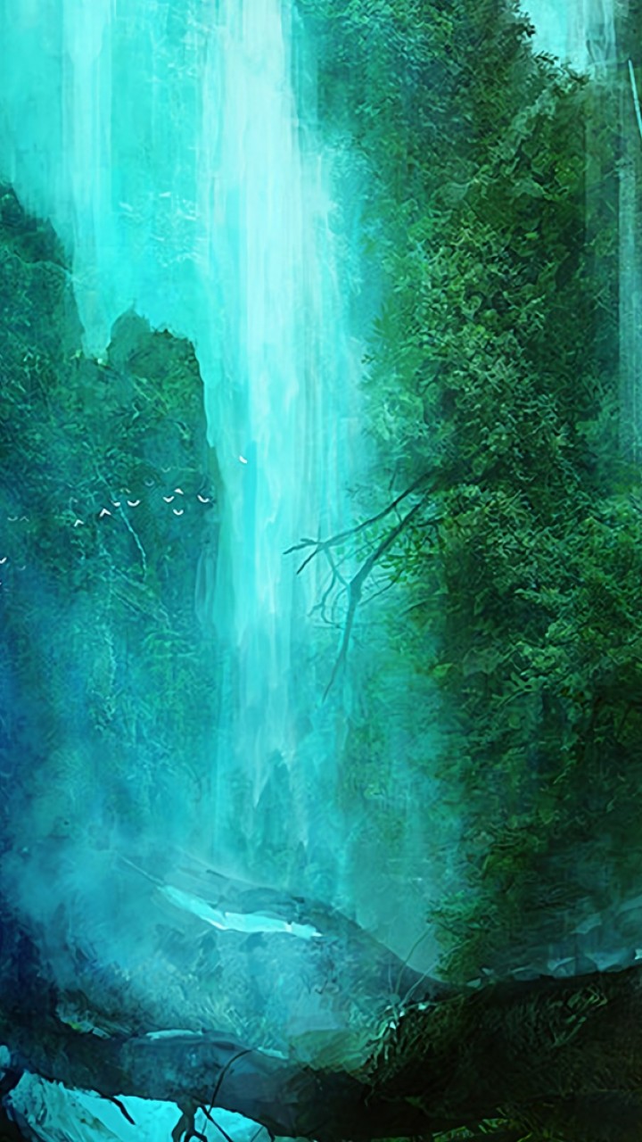 Silhouette near a waterfall HD Wallpaper - 720x1280