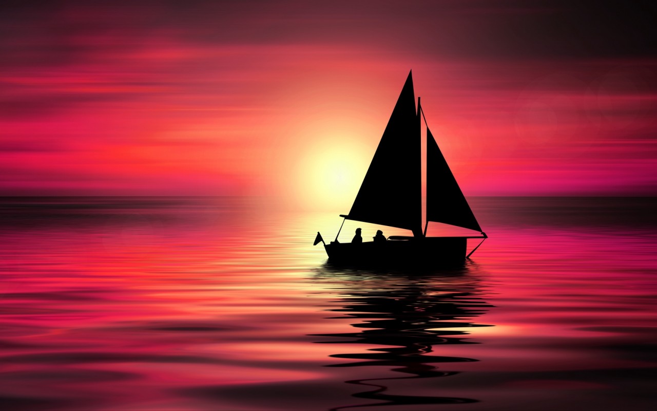 Silhouette of small yacht sailing on sea HD Wallpaper - 1280x800