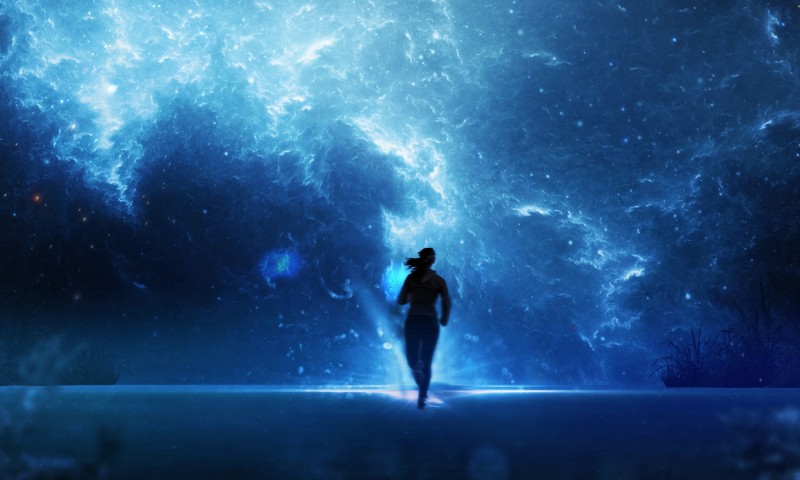 Silhouette running at space HD Wallpaper - 800x480