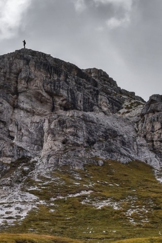 Silhouette standing at the peak of a mountain HD Wallpaper - Older iPhone & iPod