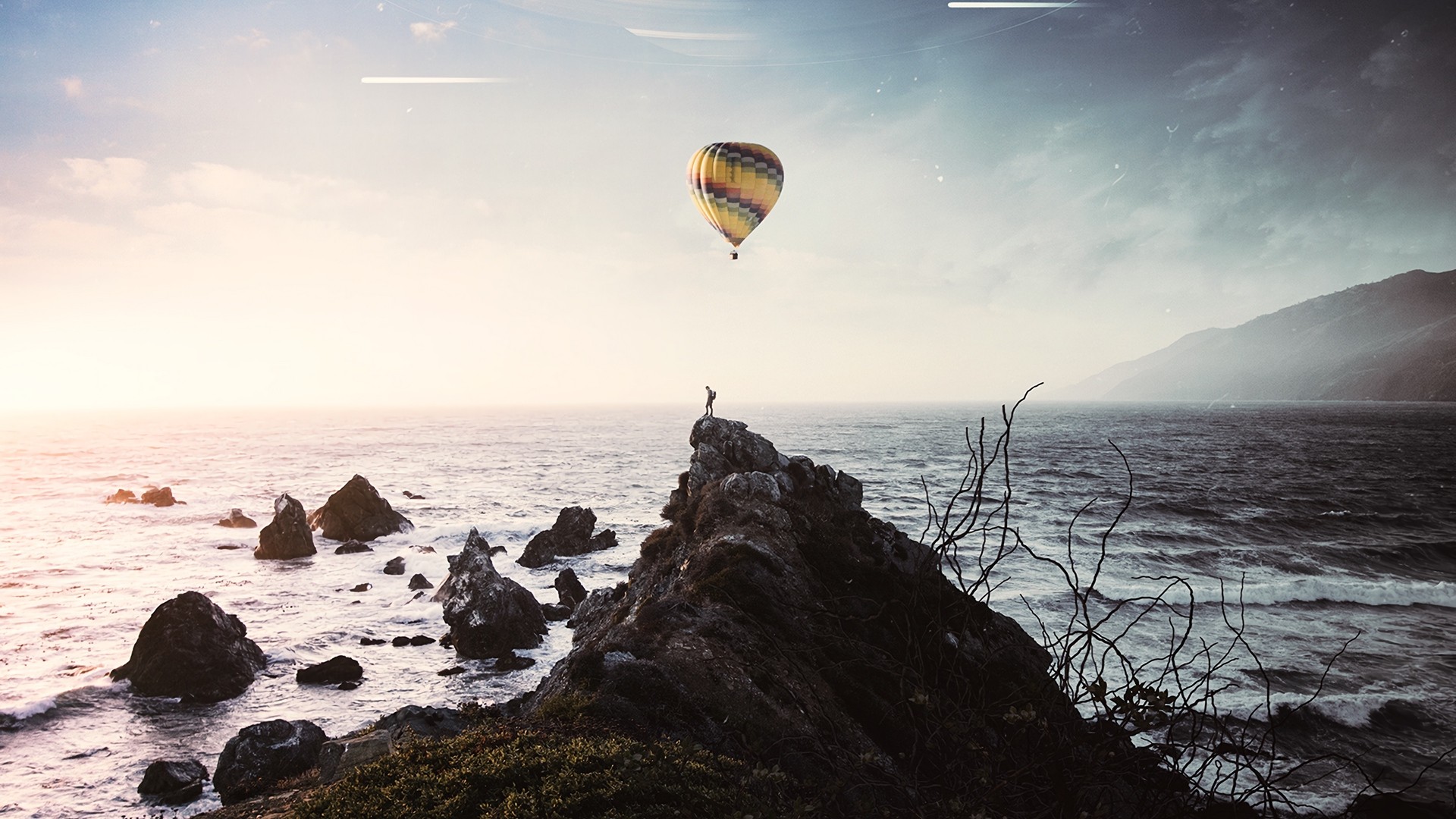 Silhouette under an air balloon HD Wallpaper - iPhone 7 Plus / iPhone 8 Plus