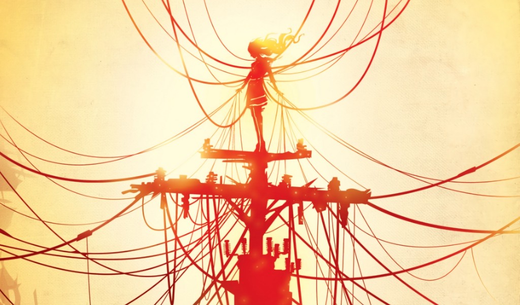 Silhouette under wires HD Wallpaper - 1024x600