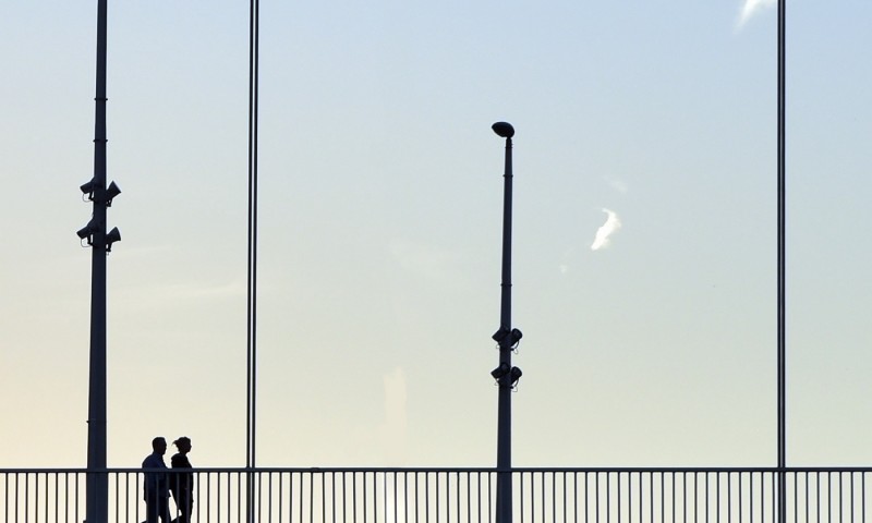 Silhouette walking at a bridge HD Wallpaper - 800x480