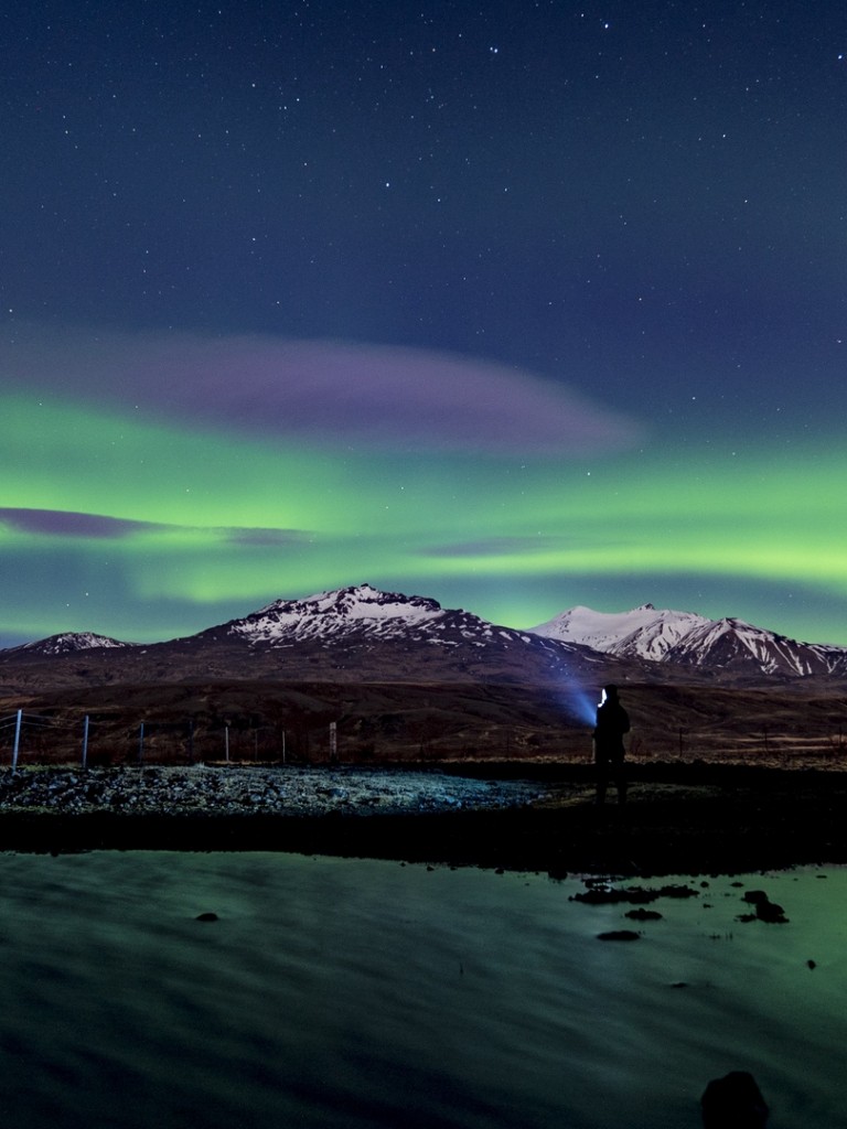 Silhouette with a torch at a winter night HD Wallpaper - Non-retina iPad