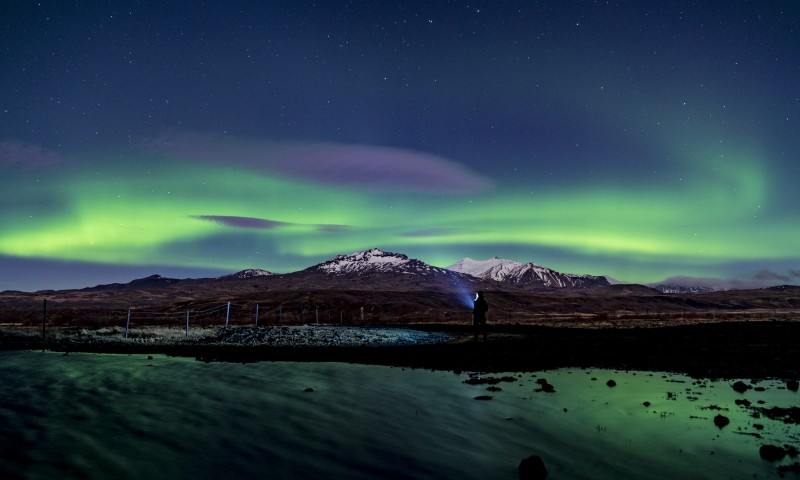 Silhouette with a torch at a winter night HD Wallpaper - 800x480