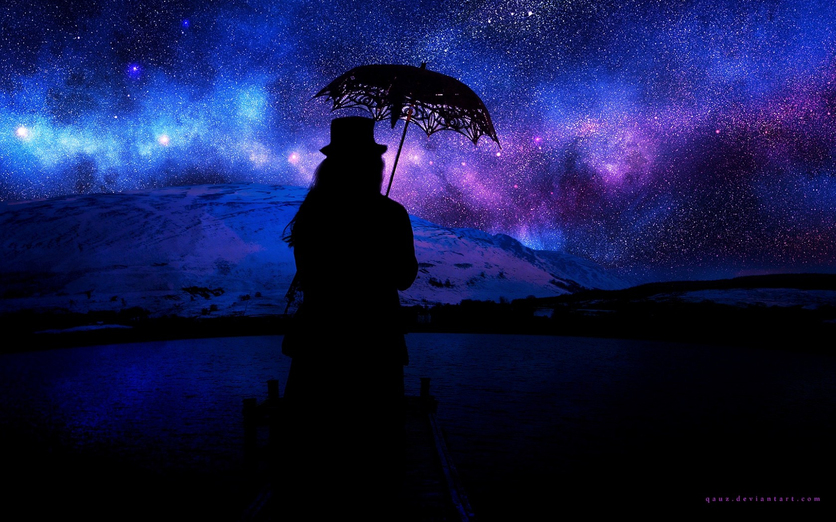 Silhouette with an umbrella HD Wallpaper - 1680x1050
