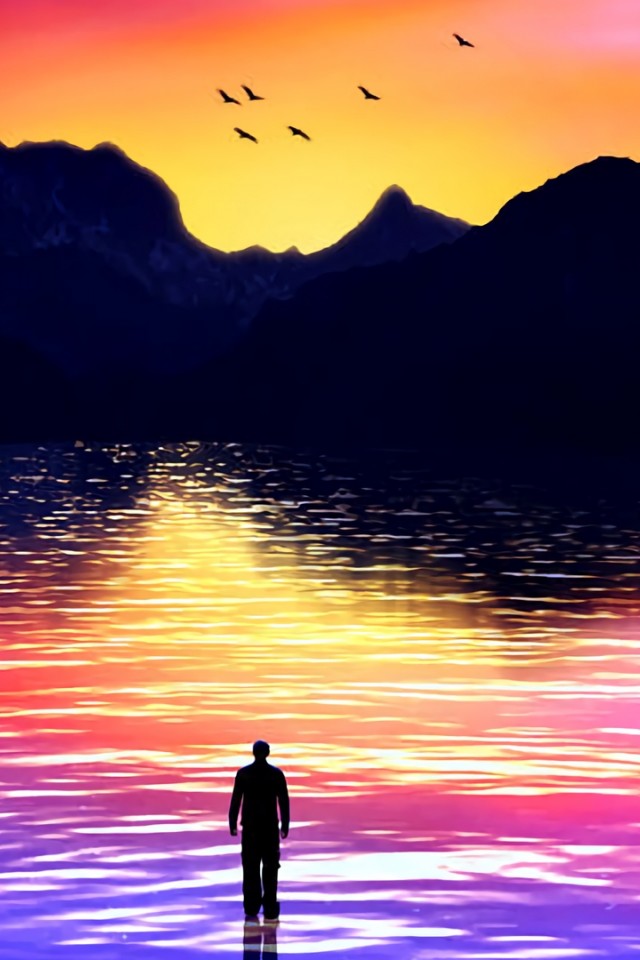 Silhouette wondeing at a colorfull sea HD Wallpaper - iPhone 4 / 4S / iPod