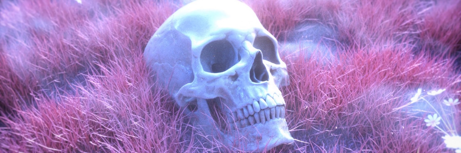 Skeleton skull on a pink grass HD Wallpaper - Instagram Cover Photo