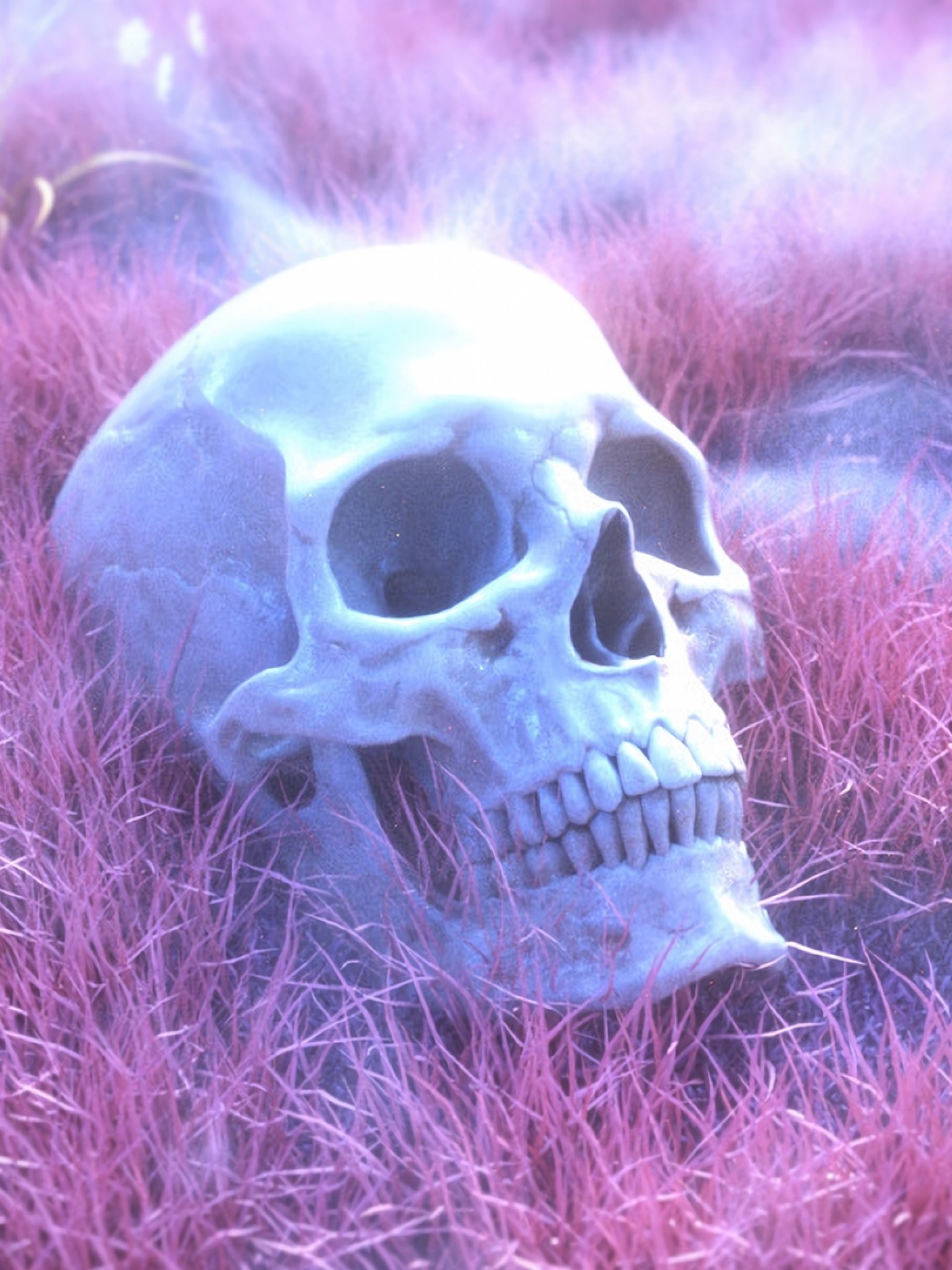 Skeleton skull on a pink grass HD Wallpaper - Retina iPad