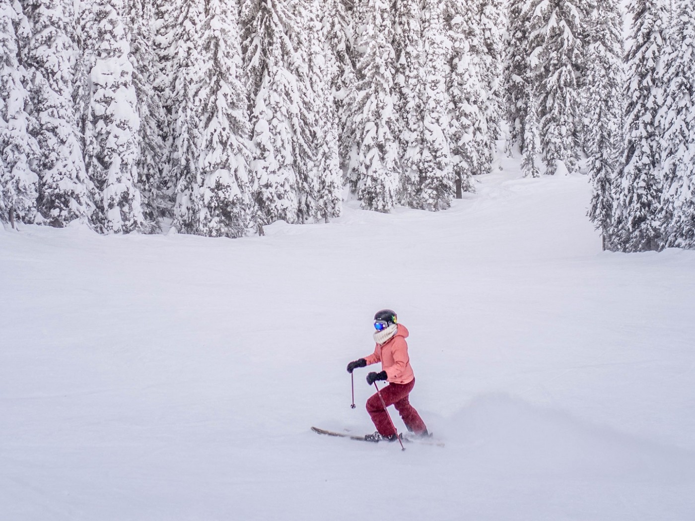 Skier through the forest HD Wallpaper - 1400x1050