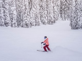 Skier through the forest HD Wallpaper - 320x240
