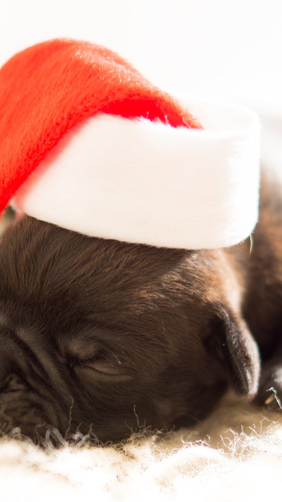 Sleeping Black Puppy Wearing White and Red Santa Hat HD Wallpaper - iPhone 6 / 6S Plus