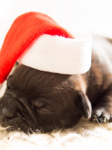 Sleeping Black Puppy Wearing White and Red Santa Hat HD Wallpaper - 360x480