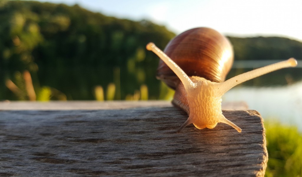 Snail walking at wood HD Wallpaper - 1024x600