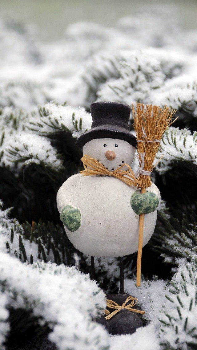 Snow Man Wearing Black Hat Holding Brown Broom HD Wallpaper - iPhone 5 / 5S (& iPod)